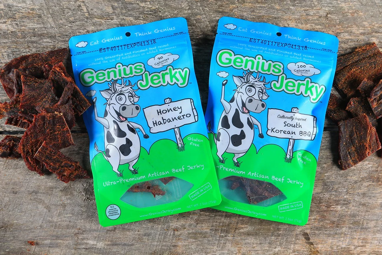 My client, Genius Jerky, wanted a clean, simple, photoshoot of his genius jerky bags.